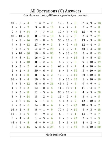 Download Math Drills Answer Sheet PDF